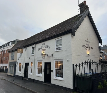The Kings Arms in Bury St Edmunds is a recently refurbished, welcoming pub with a cozy L-shaped bar and a courtyard-style garden. It offers a selection of ales, wines, and premium lagers, and regularly hosts community events such as quiz nights and live music....